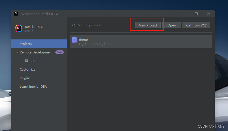 先创建一个名为SpringBootDemo的项目,选择【New Project】