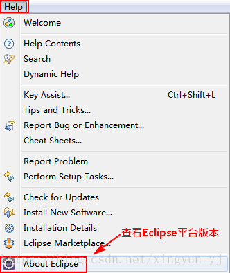2、查看自己的eclipse版本,如下图