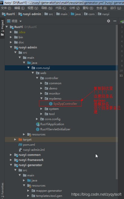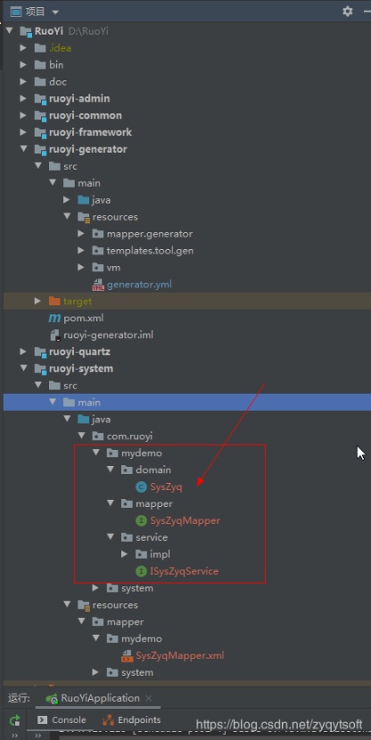 三、把其余三个放到ruoyi-system java下的mydemo包中