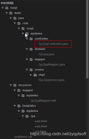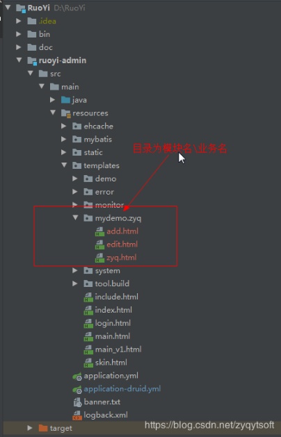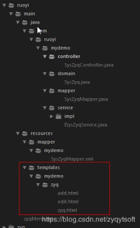 五、template下的mydemo放到ruoyi-admin resources下的templates中注意目录结构