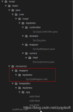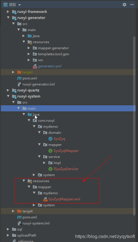 四、把mapper里的mydemo放到 ruoyi-system resources 下的mapper中