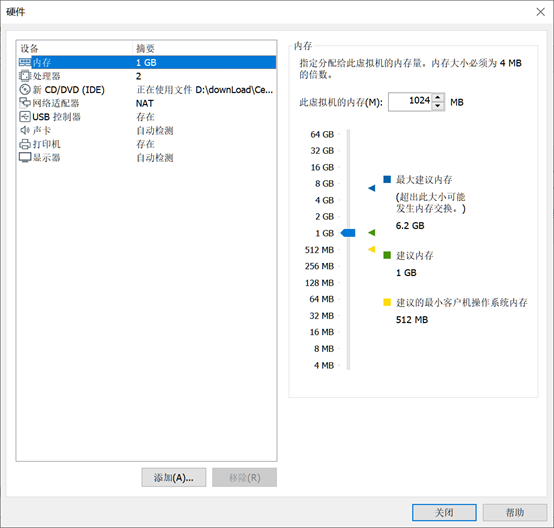 - 配置虚拟机内存,处理器个数等. 安装成功后,也可配置