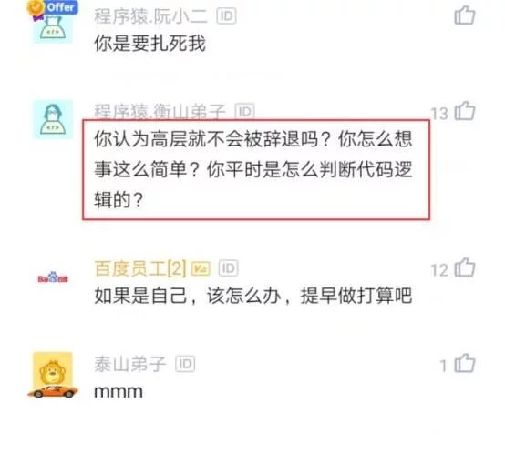 有网友觉得,有这种想法还是太年轻了啊,以为只要爬上公司高管,年龄到了40岁就不会被辞退吗?想事情还是太过于简单了吧!也有网友觉得,以前不太理解,现在有点理解,不过40岁了,既然选择做技术,那还是要保持更新才好,要不然就赶紧创业吧!