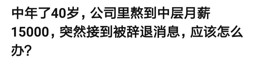 以上就是玩命早晨最近收集整理的关于40岁遭遇中年危机:好不容易熬到公司中层,月薪一万五,却突然被辞退,怎么办?...的全部内容,更多相关40岁遭遇中年危机:好不容易熬到公司中层,月薪一万五,却突然被辞退,怎么办?内容请搜索靠谱客的其他文章。