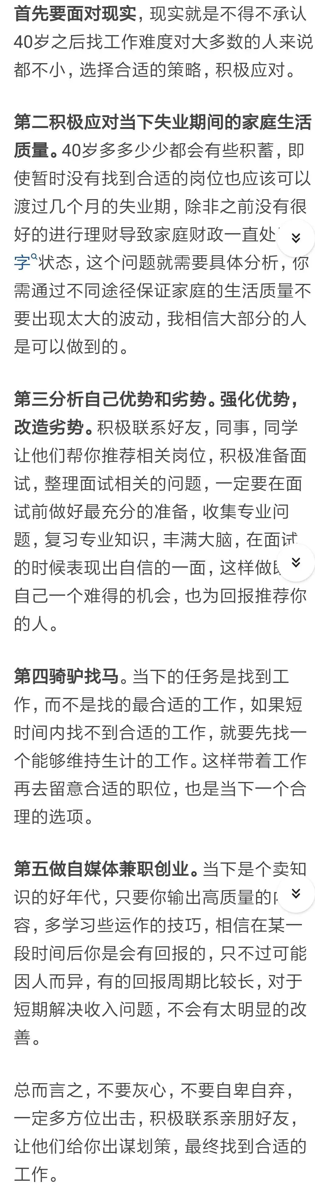 有人说,首先要面对现实,40岁之后找工作难度确实比较大。