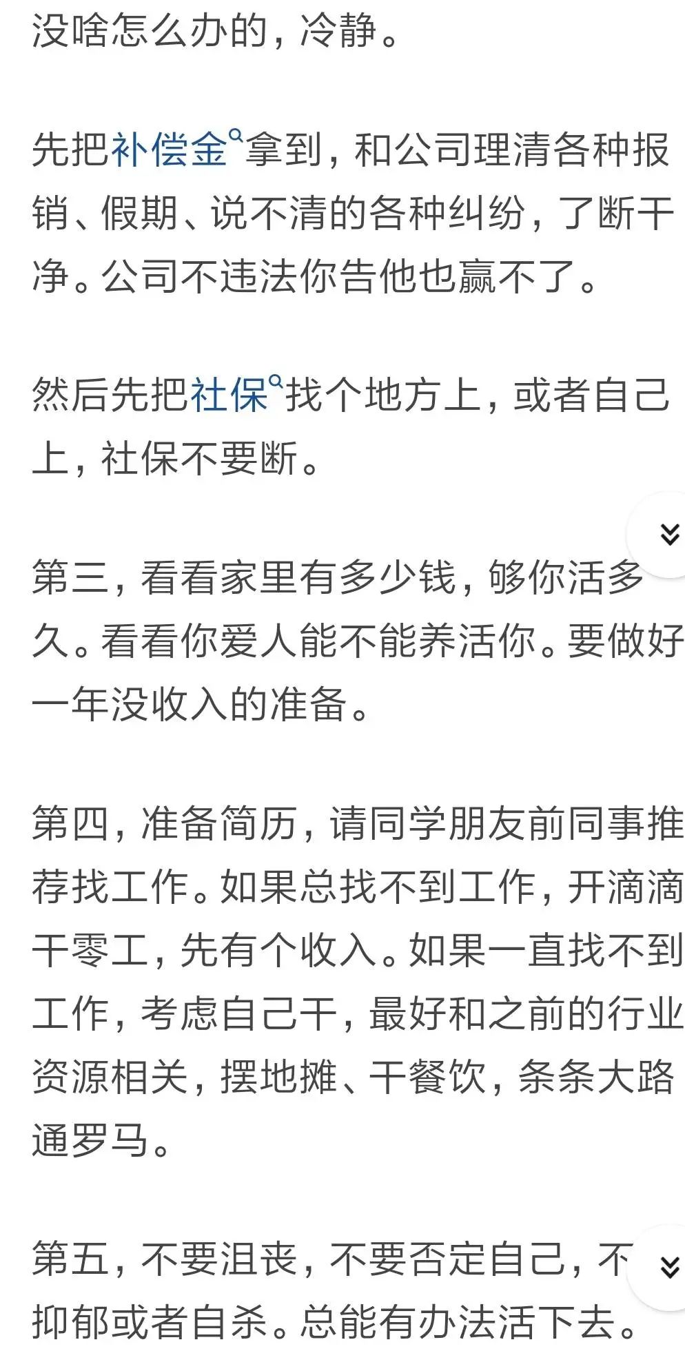 第一,把补偿金拿到手,和公司理清各种报销、假期等纠纷,了断干净。
