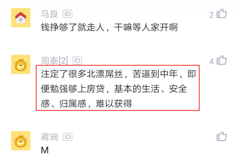 有网友说40多岁了,应该实现财务自由了吧。可是有网友反驳说这种人只是少数,大多数北漂的人,由于开支太高,根本就存不下多岁钱。