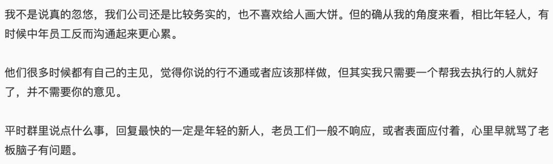 什么性价比不高、没有拼劲,最根本的就是 35+ 员工不好忽悠。