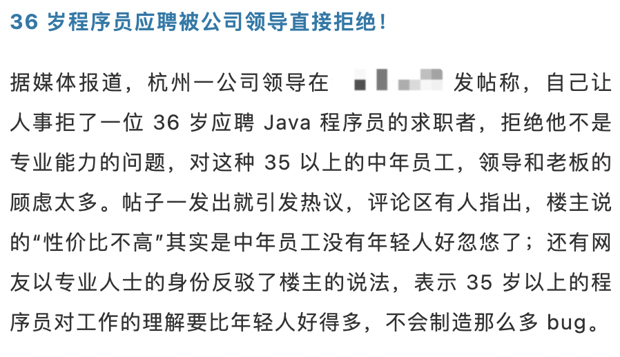 以上就是无辜大炮最近收集整理的关于36 岁程序员应聘基础岗位被拒,部门领导被网友疯狂吐槽的全部内容,更多相关36内容请搜索靠谱客的其他文章。
