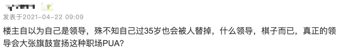 楼主自以为自己是领导,殊不知自己过 35 岁也会被人替掉,什么领导,棋子而已,真正的领导会大张旗鼓宣扬这种职场 PUA?