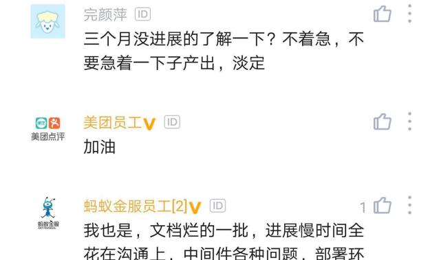 对于楼主因为在工作上进展不顺而怀疑自己的能力,网友认为这不是个例,有网友表示三个月没进展的了解一下?不着急,不要急着一下产出,淡定;我也是,文档烂的一批,进展慢时间全花在沟通上,中间件各种问题,部署环境各种复杂,根本不是写代码的事儿;真好我都枯坐一个月了;别虚,坚持住,等项目完成了你会发现自己成长了很多,以后这类问题都是小意思。