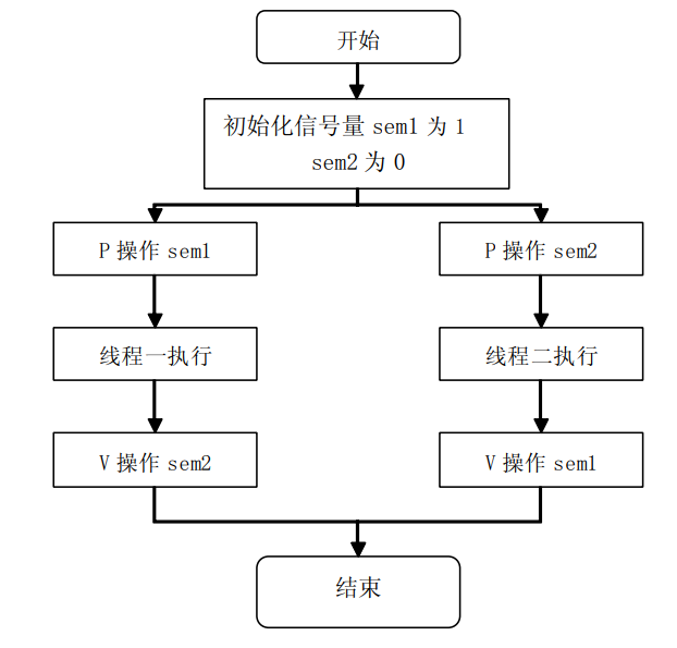 同步信号量做同步机制时,往往设置多个信号量,通过初始化值和PV操作来决定他们的运行顺序。