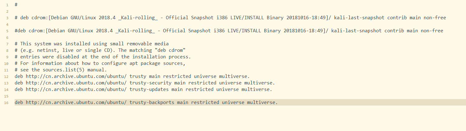deb http://cn.archive.ubuntu.com/ubuntu/ trusty-backports main restricted universe multiverse.