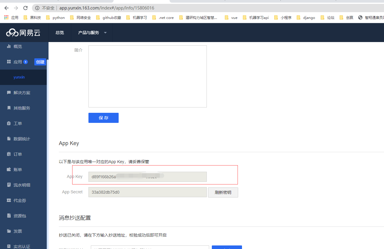 4.在网易云信注册账号,然后在控制台创建一个应用,记录下应用的App Key。