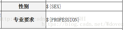 - 新建一个.doc 文档写好自己要导出文字如下图,把各种表格画好,在表格要填数据的空格中写上该数据后台对应的数据名,比如说后台传一个存有数据的SEX变量,就能在模板中替换${SEX}成真正的数据,怎么传待会说, 总之先建好表,像这样(自己的表格删掉了,借用一个别的博客的); 再把文档另存为.xml格式