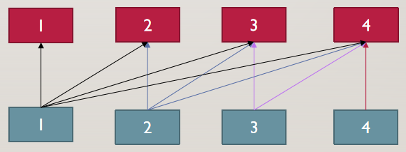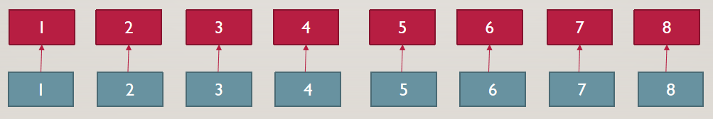 蓝色方块是原数列的对应元素,可以发现每一个红色方块都是一段连续的蓝色方块的和 ,红色方块存放的就是树状数组。