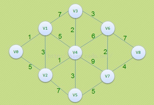 思路:从某个顶点开始,找其相邻顶点的最短边,将其相邻顶点加入到已访问顶点中,还要从前边已经访问顶点中看是否存在到当前顶点的更短路径,这样就找到当前顶点的最短路径,当当前顶点走到尽头,要进行检查,是否还有未被访问的顶点,找到其与相邻的已被访问顶点T的最小边,则从起点经T到当前顶点即为其最短路径