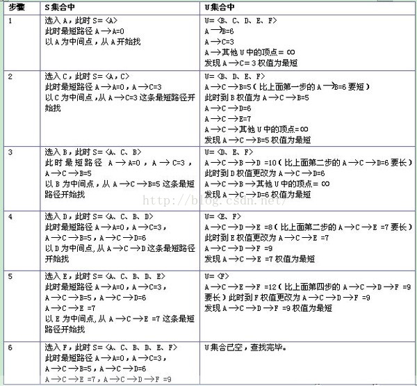设G=(V,E)是一个带权有向图,把图中顶点集合V分成两组,第一组为已求出最短路径的顶点集合(用S表示,初始时S中只有一个源点,以后每求得一条最短路径 , 就将加入到集合S中,直到全部顶点都加入到S中,算法就结束了),第二组为其余未确定最短路径的顶点集合(用U表示),按最短路径长度的递增次序依次把第二组的顶点加入S中。在加入的过程中,总保持从源点v到S中各顶点的最短路径长度不大于从源点v到U中任何顶点的最短路径长度。此外,每个顶点对应一个距离,S中的顶点的距离就是从v到此顶点的最短路径长度,U中的顶点的距离,是从v到此顶点只包括S中的顶点为中间顶点的当前最短路径长度。