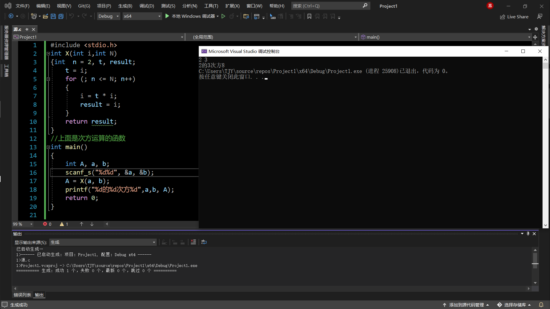 在上一次的次方运算的程序的基础上进行修改 于是就作出了如上图所示的 一个次方运算函数。