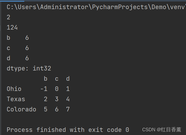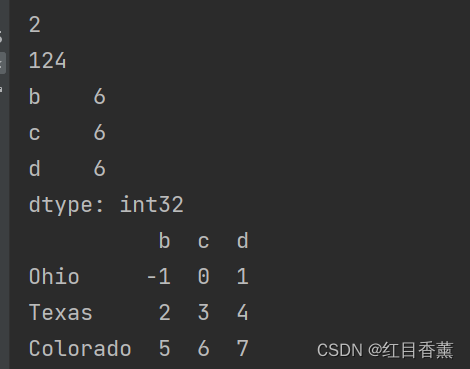 frame = DataFrame(np.arange(9).reshape(3, 3), columns=list("bcd"), index=["Ohio", "Texas", "Colorado"])