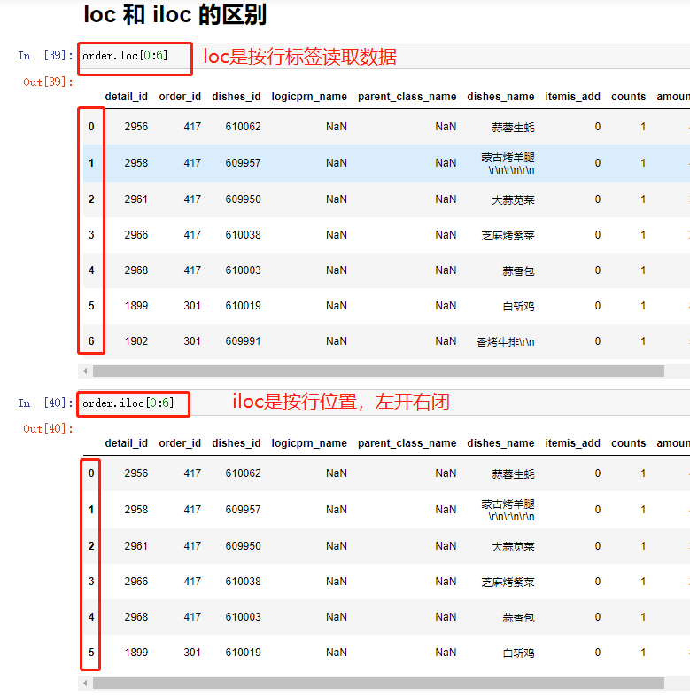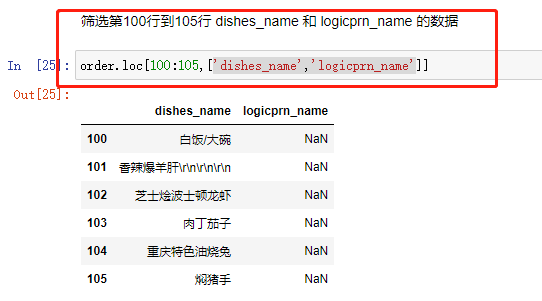 【loc[100:105],参数读取的是行索引名称,所以是100到105的数据】