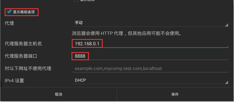 进入Android设备的WLAN连接,长按进入修改网络->显示高级选项->添加代理服务器IP和端口即可(运行Fiddler的那台机器)