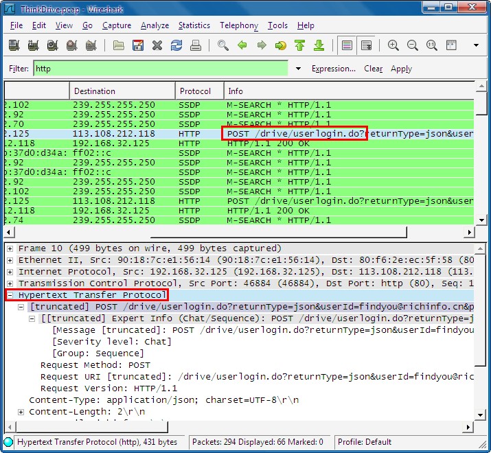 4). 使用Wireshark等工具分析抓包文件ThinkDrive.pcap