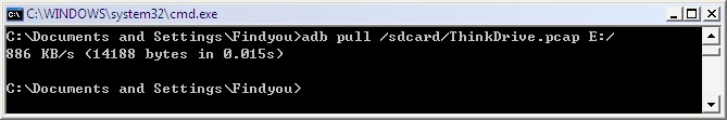 adb pull /sdcard/ThinkDrive.pcap E:/ #前为手机中文件及存放路径,后为电脑E盘根目录
