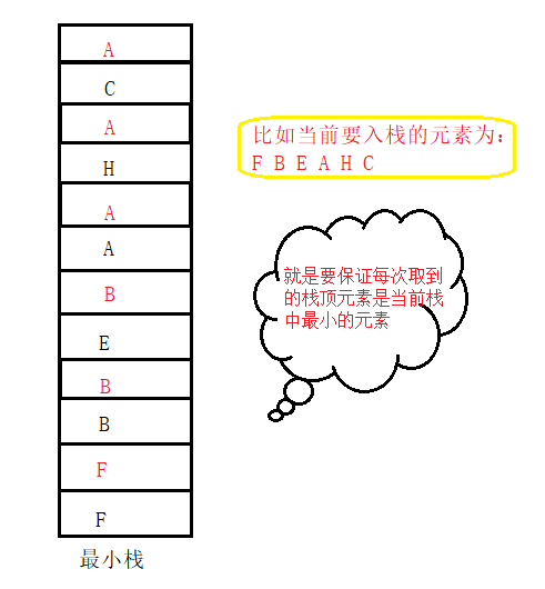 即:每次取栈顶元素取出来当前栈中最小的元素。