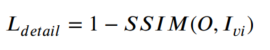 右边两项分别是背景细节保护损失函数和目标特征增强损失函数,α用于平衡这两个损失函数。在红外与可将光图像融合中,由于红外图像大多分辨率较差,所以细节信息可见光图像较多。细节保护损失函数也将从可将光图像中保护细节和结构特征作为目标,定义如下