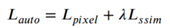 右边两项分别代表像素损失、输入输出图像之间的结构相似性损失(SSIM),λ是平衡这两个损失的超参数。像素损失的计算方法如下