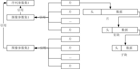 H.264分层结构由五层组成,分别是序列参数集、图像参数集、片(Slice)、和宏块和子块。参数集是一个独立的数据单位,不依赖于参数集外的其它句法元素。图2描述了参数集与参数集外的句法元素之间的关系。