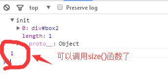 6.解决能够调用size()函数的问题,需要把init的原型对象指向G.prototype 上就可以了;也就是指向G.fn