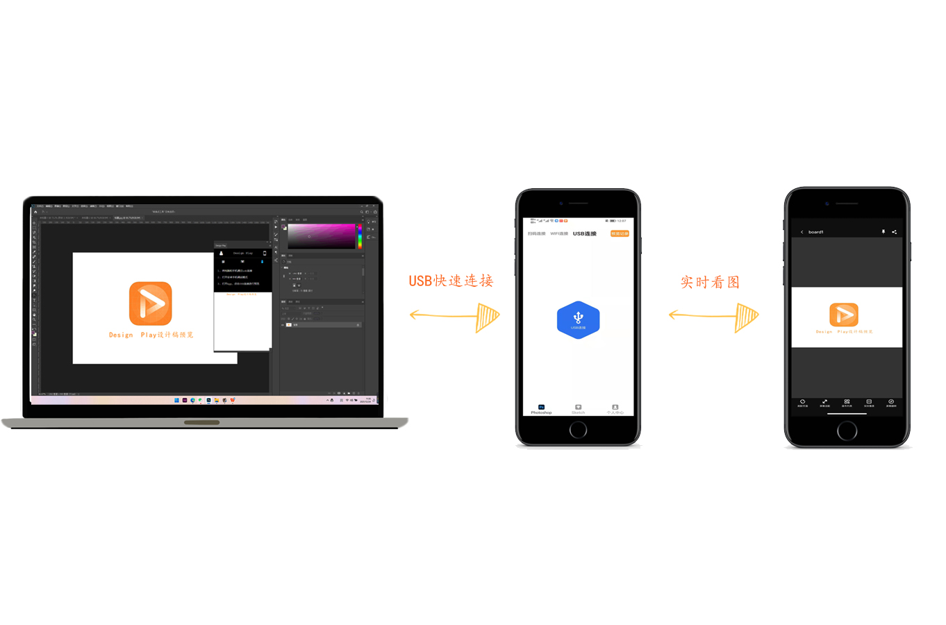Design Play是最近半年才开发出来的应用程序,它可以不需要保存设计稿,就可以在iPhone或安卓上同步(预览)支持Photoshop预览,Adobe XD预览,Sketch预览 ,还支持多画板和Pages的预览,操作简单快捷,是许多的UI设计师最常用的到的软件及插件。