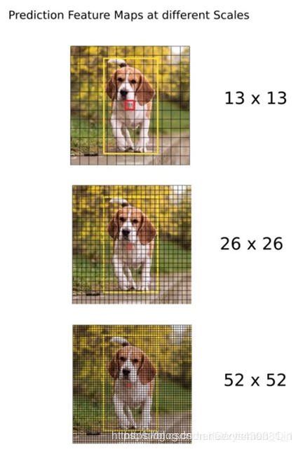 YOLO v3采用(类似FPN)上采样(Upsample)和融合做法,融合了3个尺度(1313、2626和52*52),在多个尺度的融合特征图上分别独立做检测,最终对于小目标的检测效果提升明显。(有些算法采用多尺度特征融合的方式,但是一般是采用融合后的单一特征图做预测,比如YOLOv2,FPN不一样的地方在于其预测是在不同特征层进行的。)