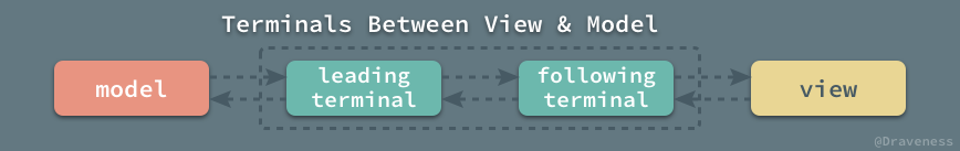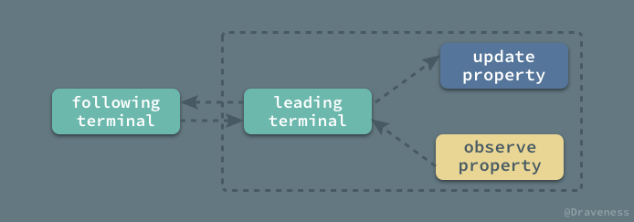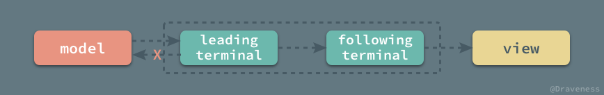 在上述情况下, leadingTerminal 的订阅者(模型)并不会收到消息,它的订阅者(视图)只会在 followingTerminal 收到消息时才会接受到新的值。