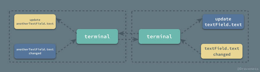 第二个是在 followingTerminal 接收到来自 leadingTerminal 的消息时,更新 UITextField 的 text 属性。