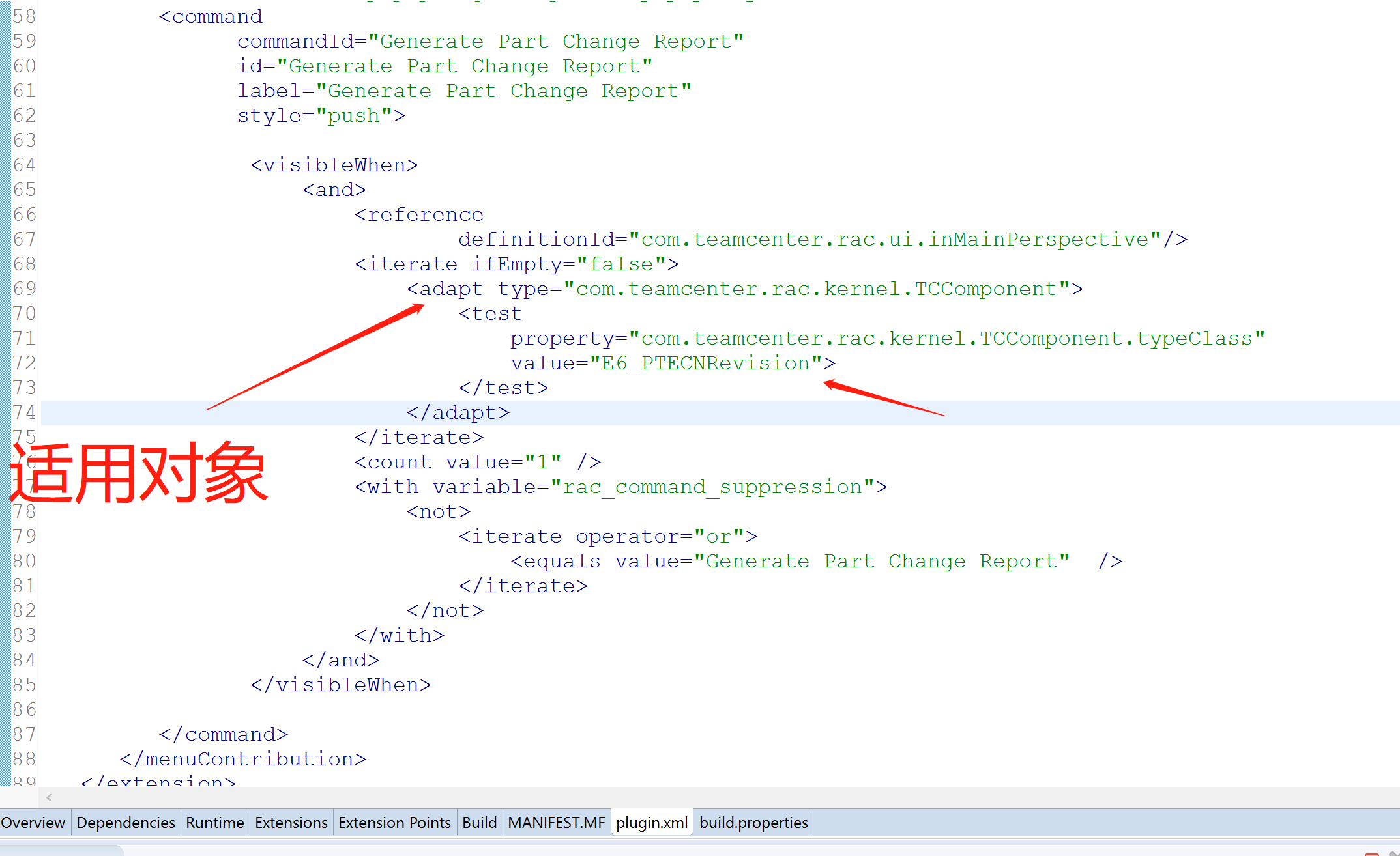 Eclipse 使用基于布尔表达式的语法来允许使用visibleWhen表达式控制菜单中任何特定命令的可见性。自定义plugin.xml文件中的每个命令贡献都必须有一个visibleWhen表达式,使用with表达式使用rac_command_suppression源