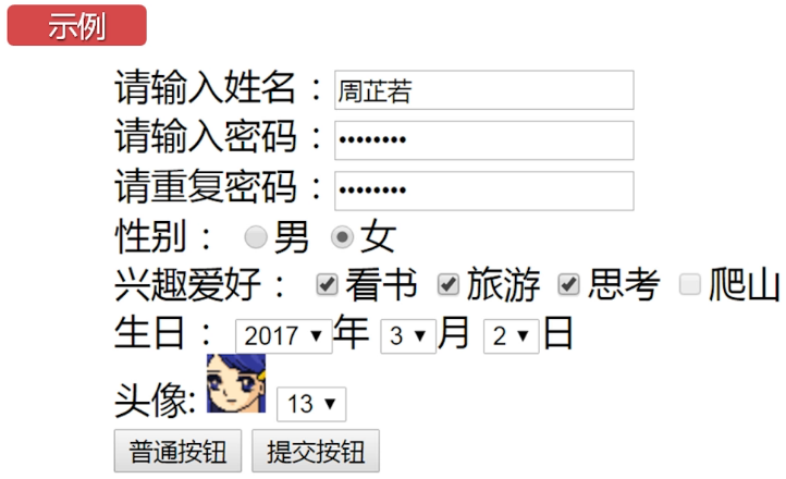 <input type="button" name="" value="普通按钮">