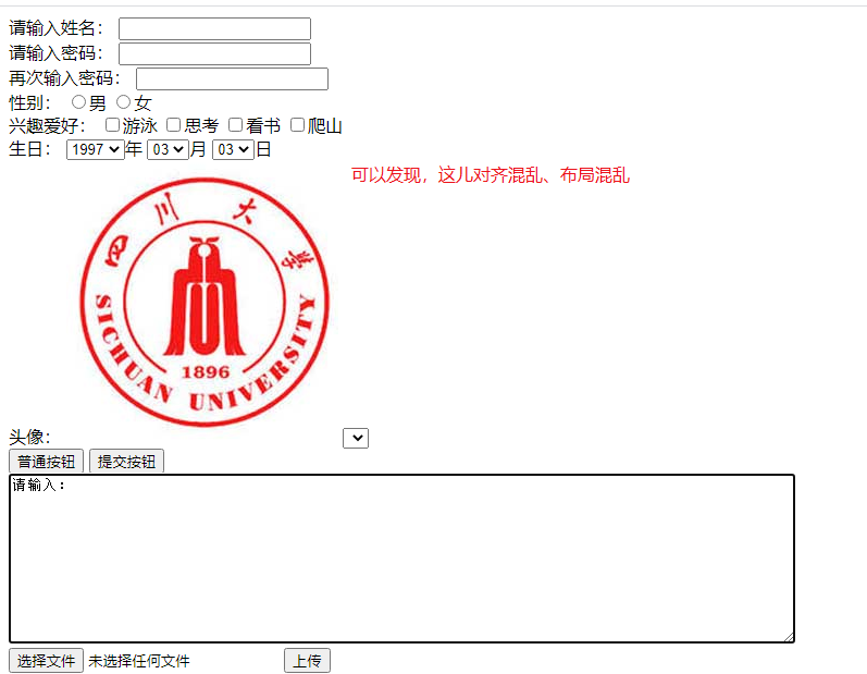 (1)通过上面的例子,也可以发现,表格的每一个单元格里面可以盛放各种类型的东西,即表格也可以单纯看成是一个可以规整分割页面,划分成不同区域的一个分割器啦。