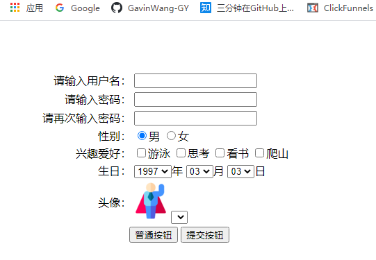 <input type="radio" name="sex" id="" checked="checked">男 <!--男默认被选中-->