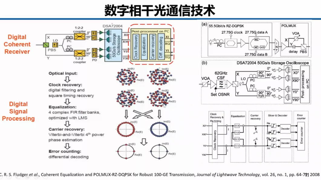 最简单的流程:首先解偏振复用,采用MIMO结构,然后做载波相位恢复,把相位恢复出来,就可以得到QPSK