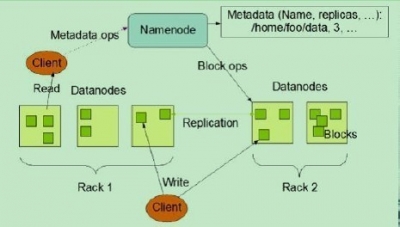 client联系NameNode以获取文件的元数据,而真正的文件I/O操作是直接和DataNode进行交互的。 下图为HDFS整体结构示意图