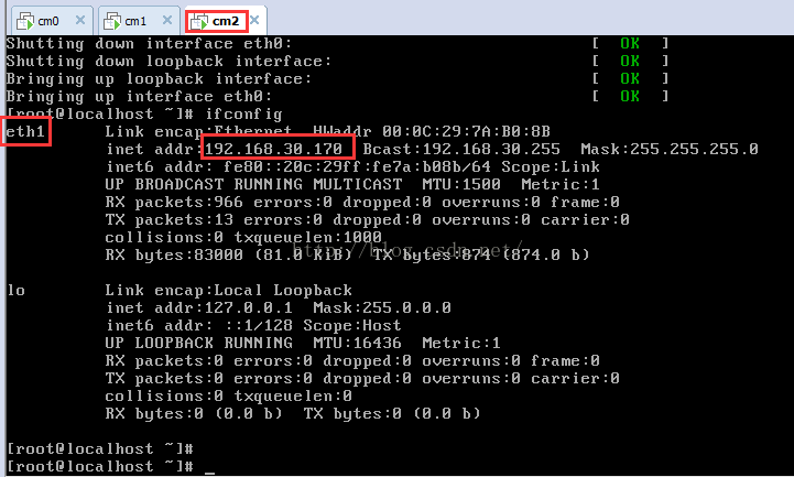 注意:因为虚拟机克隆产生的VM的网卡号一般都会自动增加,也就是原VM是eth0,克隆生成的就是eth1,eth2等。