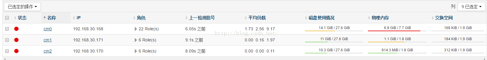 Cloudera Manager是为了简化hadoop及其组件的部署,但是由于包含的组件较多,对内存要求也比较大。所以我们尽量要保持主节点master和副节点足够的内存和磁盘空间,否则会出现一些无法预估的错误。