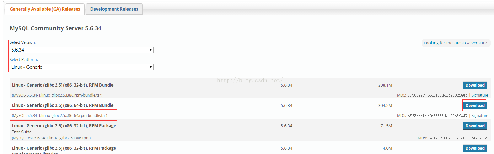 http://dev.mysql.com/downloads/mysql/ 打开网址: Select Platform: 选择 Linux-Generic