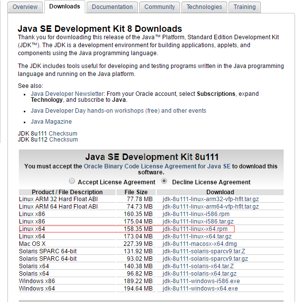 选择选择 Linux - Generic (glibc 2.5) (x86, 64-bit), RPM 进行下载