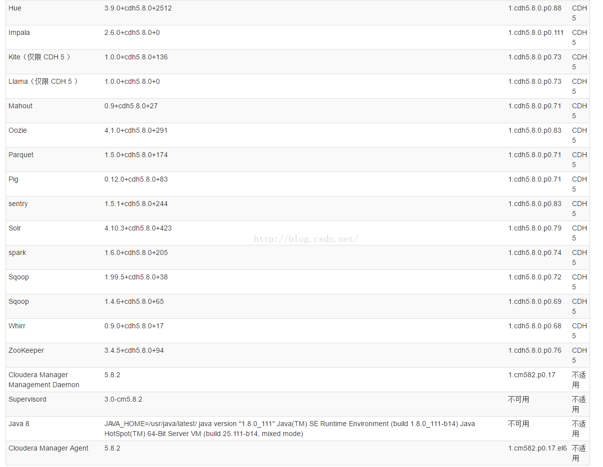需要注意的是这里的CDH5.8.2没找到CDH5.8.2-0的版本,CDH5.8.2-1版本是大于CMCDH5.8.2的,所以我这里用CDH5.8.0。