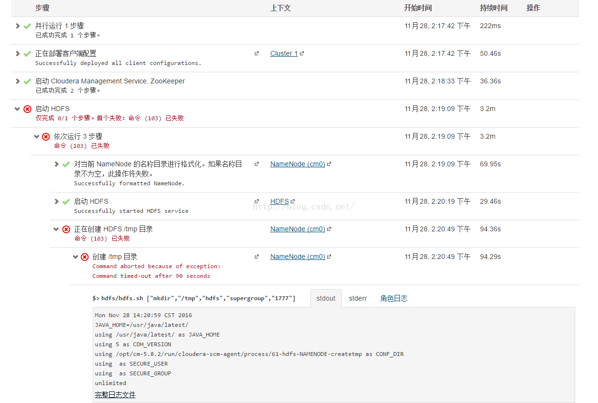 + /opt/cloudera/parcels/CDH-5.8.0-1.cdh5.8.0.p0.42/lib/hadoop-hdfs/bin/hdfs --config /opt/cm-5.8.2/run/cloudera-scm-agent/process/61-hdfs-NAMENODE-createtmp dfs -test -d /tmp