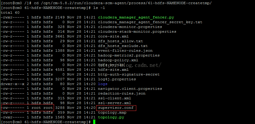 cd /opt/cm-5.8.2/run/cloudera-scm-agent/process/61-hdfs-NAMENODE-createtmp/